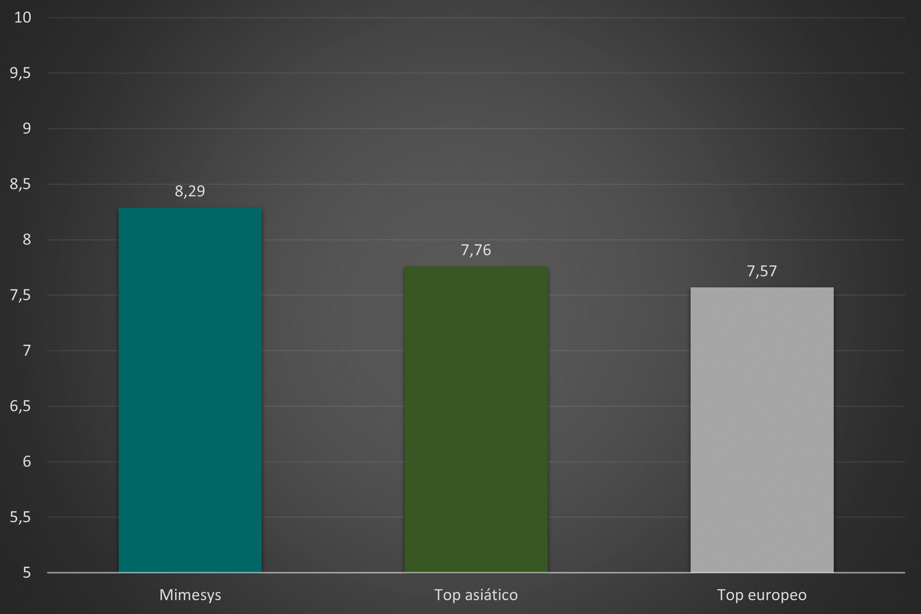 Por fim, a avaliação global de cada uma das progressivas testadas ofereceu uma visão mais clara da melhora que pressupõe mimesys® (2) Lens, ao obter pontuação média mais elevada frente à lente top europeia e também à top asiática, enfatizando-se o fato de que em todos os casos tratavam-se de lentes de referência premium no mercado.
